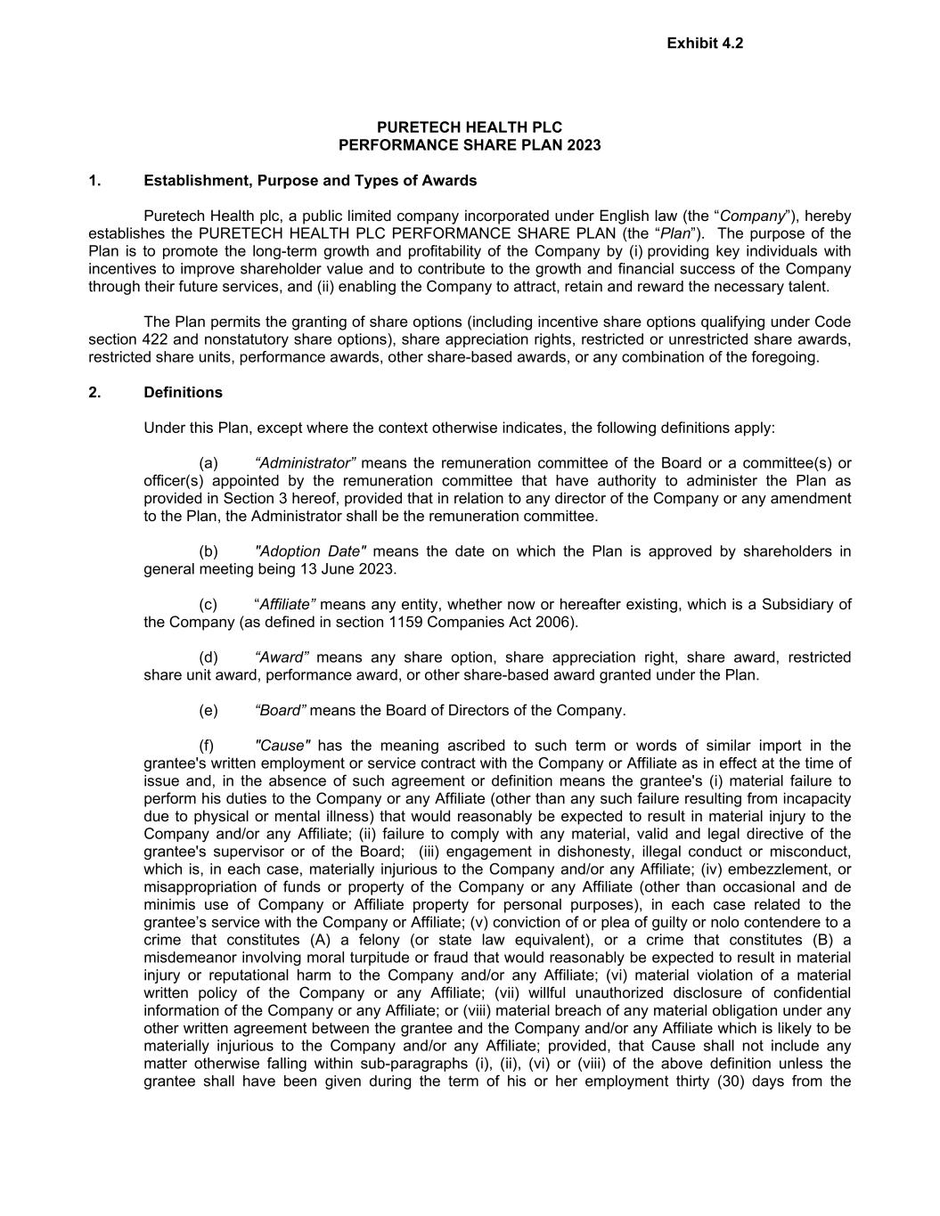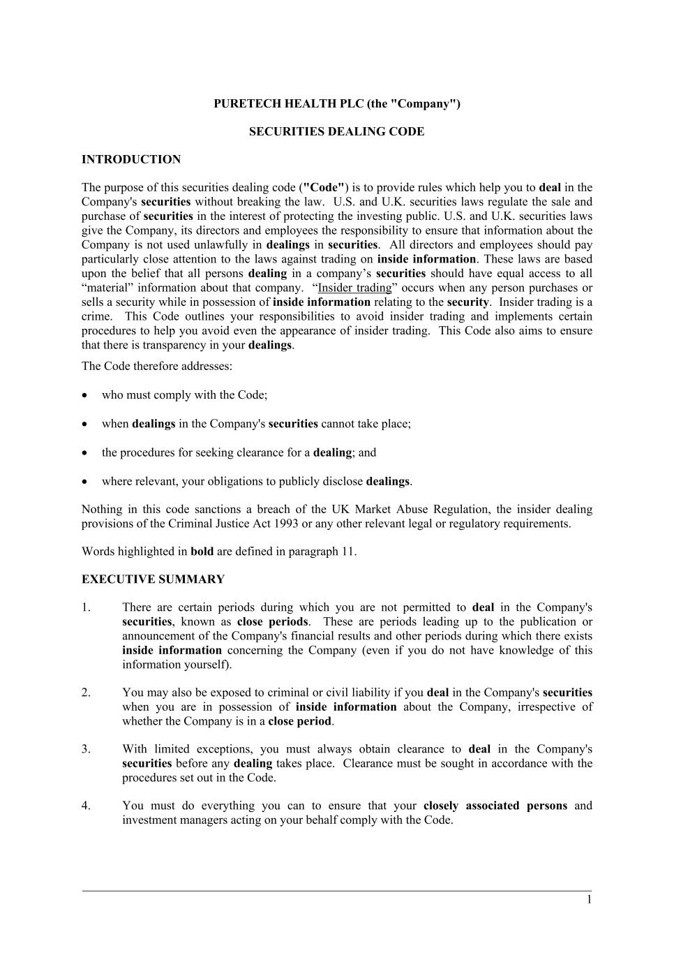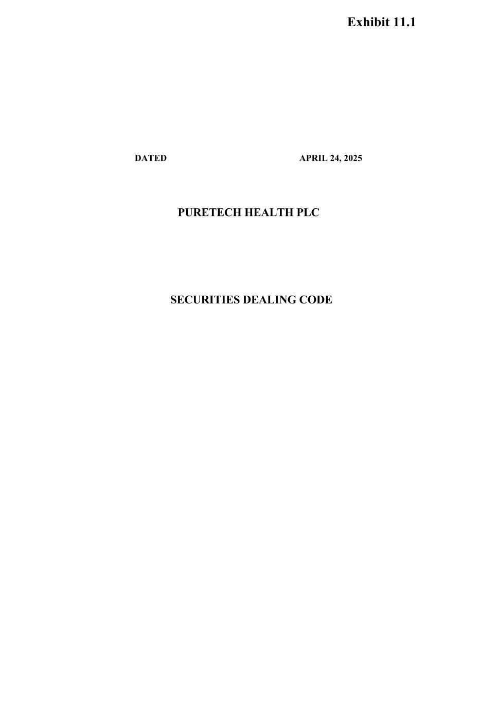 PureTech Health plc (the “Company”) has adopted this Policy for Recovery of Erroneously Awarded Compensation (the “Policy”), effective as of November 8, 2023, (the “Effective Date”). Capitalized terms used in this Policy but not otherwise defined herein are defined in Section 11.
