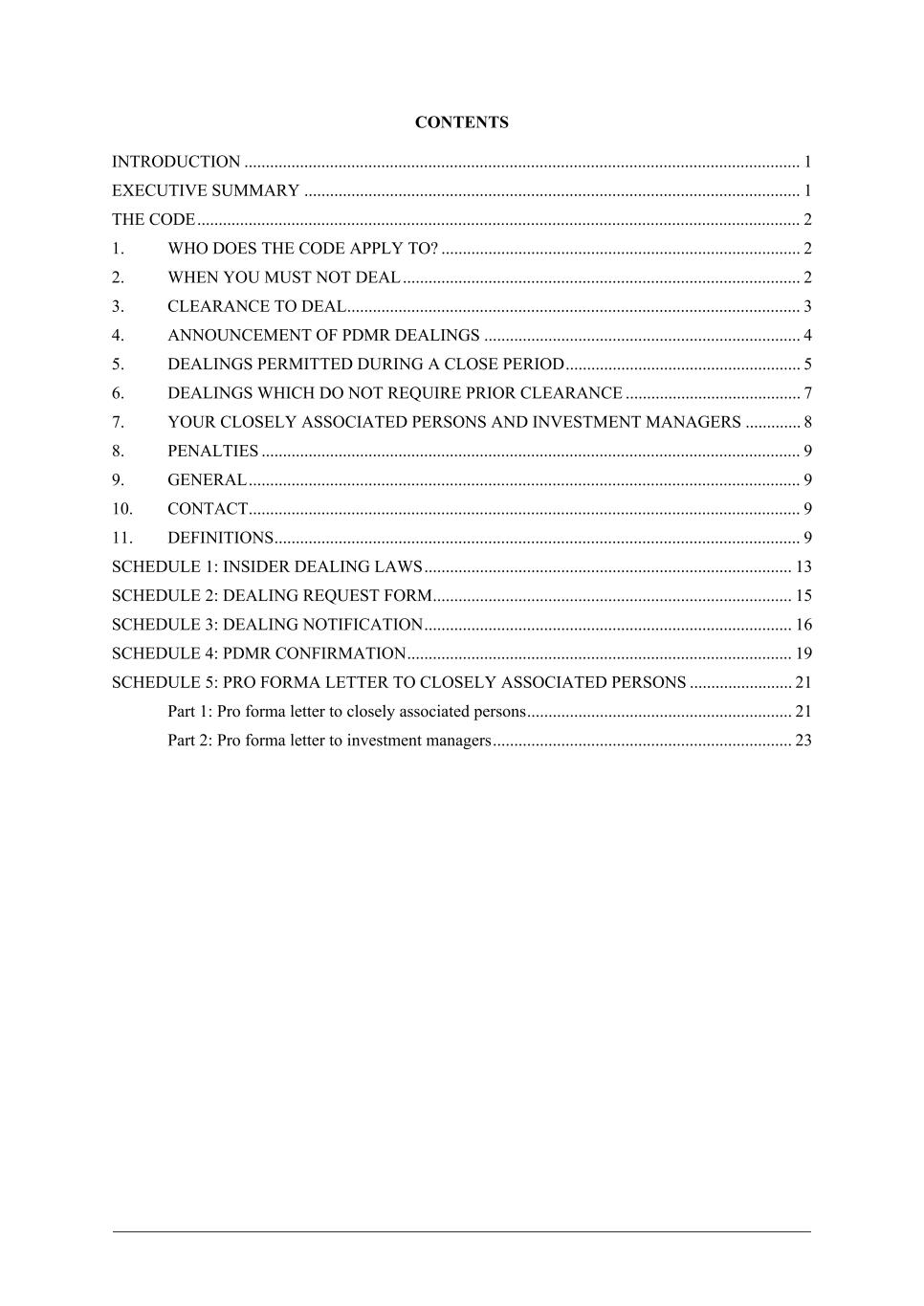 TABLE OF CONTENTS