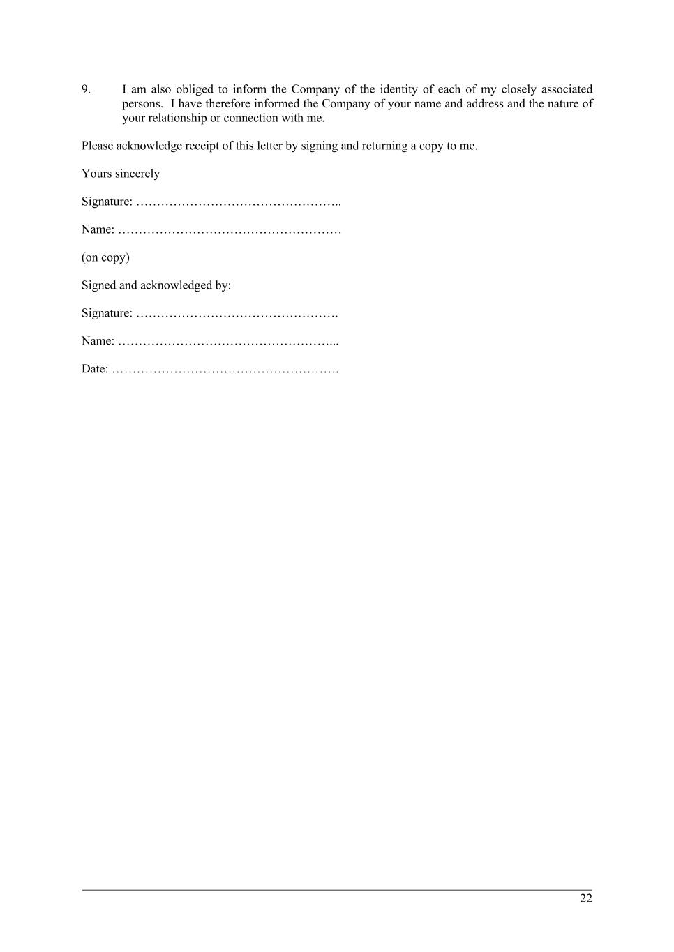 The undersigned further acknowledges and agrees that the undersigned is not entitled to indemnification in connection with any enforcement of the Policy and expressly waives any rights to such indemnification under the Company’s organizational documents or otherwise.