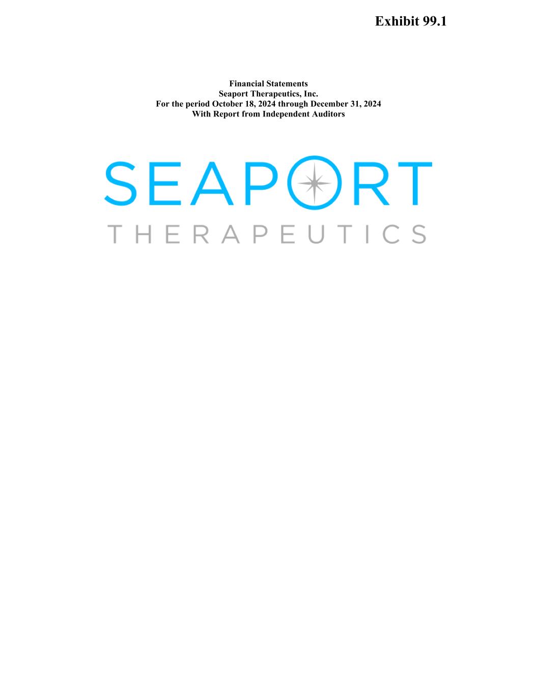 Financial Statements Seaport Therapeutics, Inc. For the period October 18, 2024 through December 31, 2024 With Report from Independent Auditors Exhibit 99.1