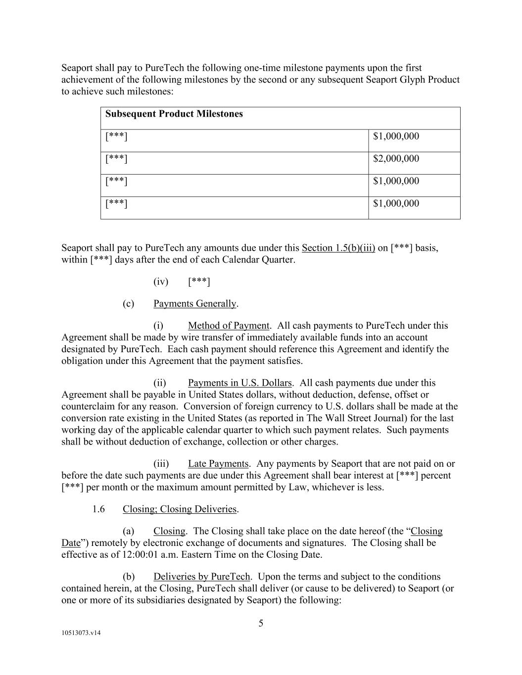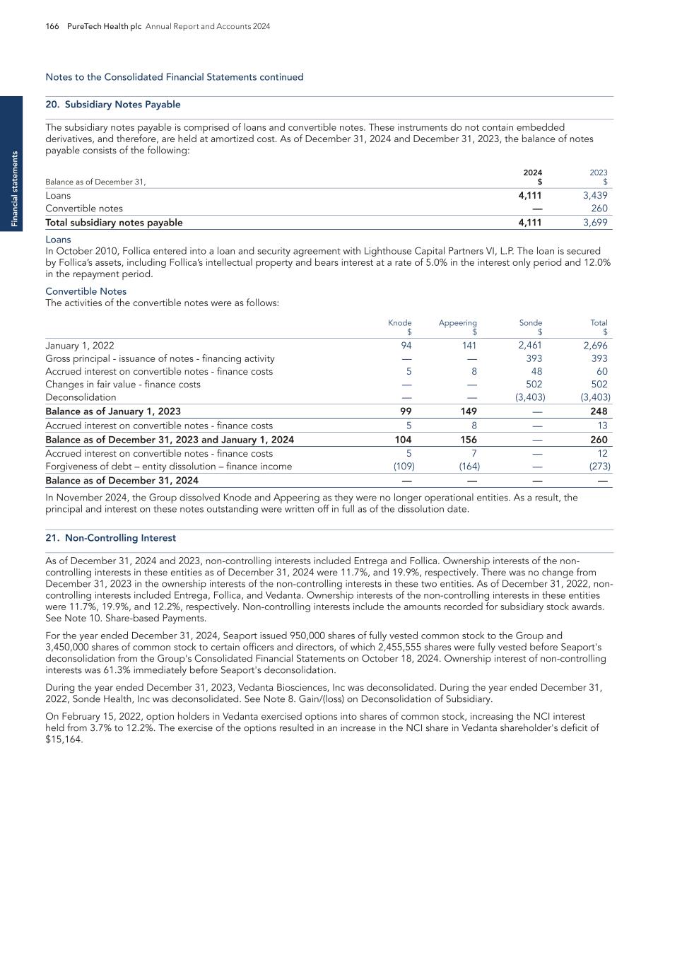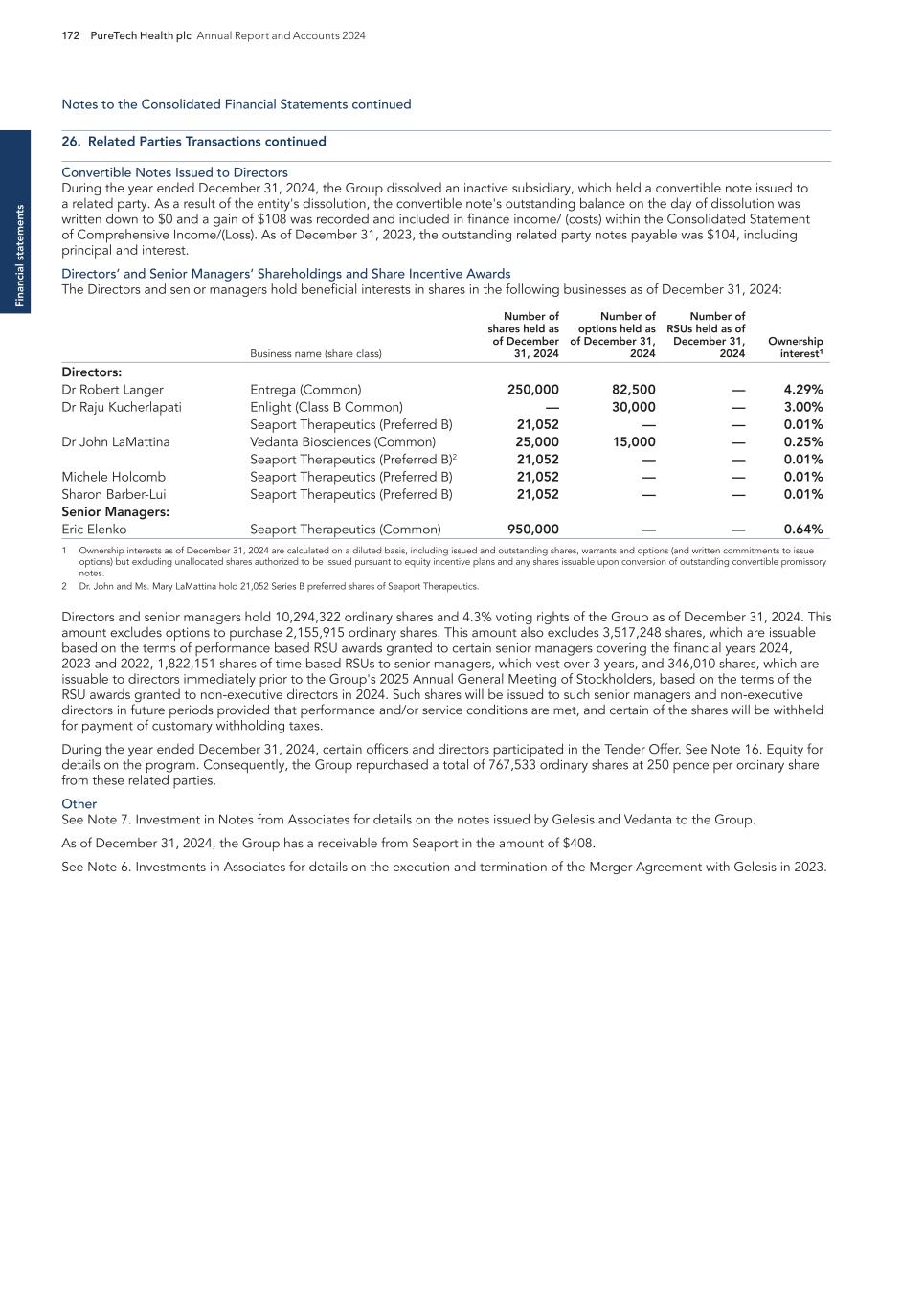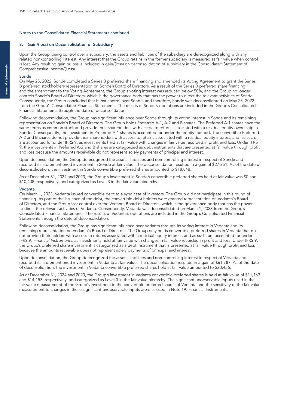 F-8 Seaport Therapeutics, Inc. Notes to Consolidated Financial Statements 1. NATURE OF BUSINESS AND BASIS OF PRESENTATION Background Seaport Therapeutics, Inc., and its consolidated subsidiaries, Seaport or the Company, is a clinical-stage biopharmaceutical company advancing the development of neuropsychiatric medicines in areas of high unmet patient needs using the Company's proprietary Glyph™ Platform. The accompanying financial statements include the financial position, results of operations and comprehensive loss, changes in cash flows and stockholder's deficit for the period October 18, 2024 through December 31, 2024, or the Stub Period. In accordance with Rule 3-09 of Regulation S-X, full financial statements of significant equity investments are required to be presented in the annual report of the investor. For purposes of S-X 3-09, the investee’s separate annual financial statements should only depict the period of the fiscal year in which it was accounted for by the equity method by the investor. On October 18, 2024, the Company completed the Series B convertible preferred stock financing, or the Series B Financing. This resulted in a decrease to PureTech LYT’s fully-diluted ownership, resulting in PureTech LYT no longer maintaining a controlling interest in the Company. Accordingly, the Stub Period reflects the activities of the Company after the closing of the Series B Financing. See Note 8—Convertible Preferred Stock, for further disclosure around the issuances of the Company's convertible preferred stock. The Company is subject to risks and uncertainties common to early-stage companies in the biotechnology industry, including, but not limited to, completion of preclinical studies and clinical trials, obtaining regulatory approvals for product candidates, dependence on key personnel, protection of intellectual property, compliance with government regulations, and ability to secure capital necessary to fund operations. Product candidates currently under development by the Company will require significant additional research and development efforts, including preclinical and clinical development, and regulatory approval prior to commercialization. There can be no assurance that the Company’s research and development efforts will be successfully completed, that any product candidates developed will obtain necessary government regulatory approval or that any products, if approved, will be commercially viable. The Company operates in an environment of rapid technological innovation and substantial competition from pharmaceutical and biotechnology companies. Even if the Company’s product development efforts are successful, it is uncertain when, if ever, the Company will realize significant product revenue from product sales. The Asset Transfer and Series A Financing The Company was incorporated in April 2024 by PureTech LYT Inc., or PureTech LYT, a wholly owned subsidiary of PureTech, as the sole stockholder, and the Company issued 1,000 shares of its common stock to PureTech LYT. On April 8, 2024, or the Asset Transfer Date, the Company entered into an Asset Transfer Agreement, or the Asset Transfer, with PureTech Health LLC and PureTech LYT, pursuant to which PureTech Health LLC and PureTech LYT, agreed to contribute, convey, assign, transfer and deliver to the Company all of its right, title and interest in, to and under the assets related to its Glyph Technology and Products. As consideration, the Company issued to PureTech LYT, 40,000,000 shares of its Series A-1 convertible preferred stock and 949,000 shares of its common stock on the Asset Transfer Date, and also agreed to contingent payments to PureTech upon successful development and commercialization of products developed using the Glyph technology platform, or each Seaport Glyph Product, including; (i) low single digit tiered royalties; (ii) milestone payments up to $15.0 million upon achievement of specified milestones; and (iii) a percentage of net income generated by the Company from third parties on any products licensed under agreements which were transferred as part of the Asset Transfer Agreement. The Company determined that the Asset Transfer and related spin-off transaction represented the transfer of a business between entities under common control. As a result, the net liabilities were transferred from PureTech to the Company at PureTech’s carrying amounts on the Asset Transfer Date and the Company ascribed a nil value to the convertible preferred stock and common stock issued to PureTech Health LLC and PureTech LYT. Concurrently, upon entry into the Asset Transfer, the Company entered into a stock purchase agreement with PureTech LYT and other third-party investors, pursuant to which the Company issued and sold shares of its Series A-2 convertible preferred stock, or the Series A Financing, and together with the Asset Transfer, the Transaction. See Note 8—Convertible Preferred Stock, for further details. PureTech continues to provide various research and development and corporate services under the transition services agreement, or TSA, which was initially set to terminate one year following the date of the Asset Transfer Agreement. In March 2025 the Company extended the TSA for an additional six months. The company may incur additional operating expenses for these services once the TSA expires.