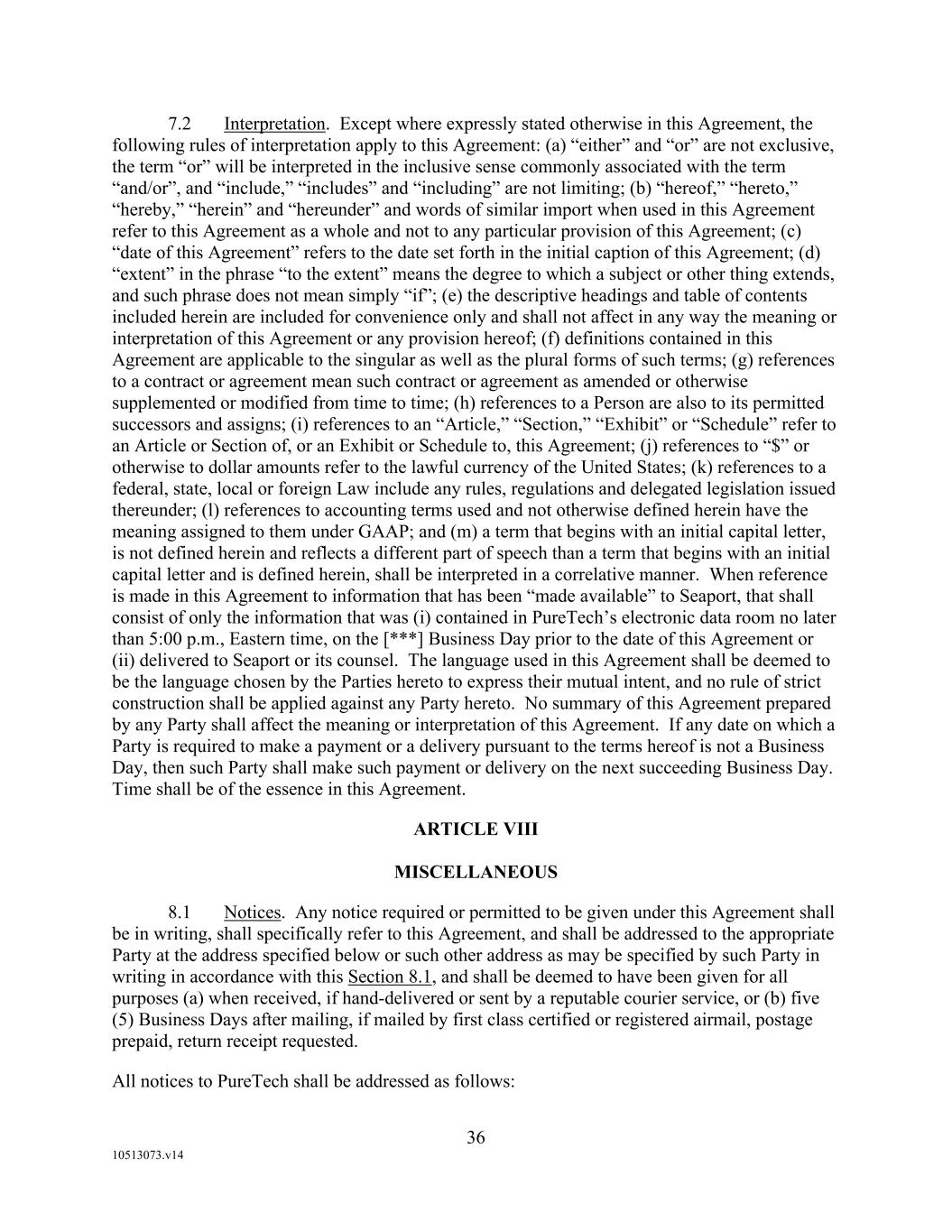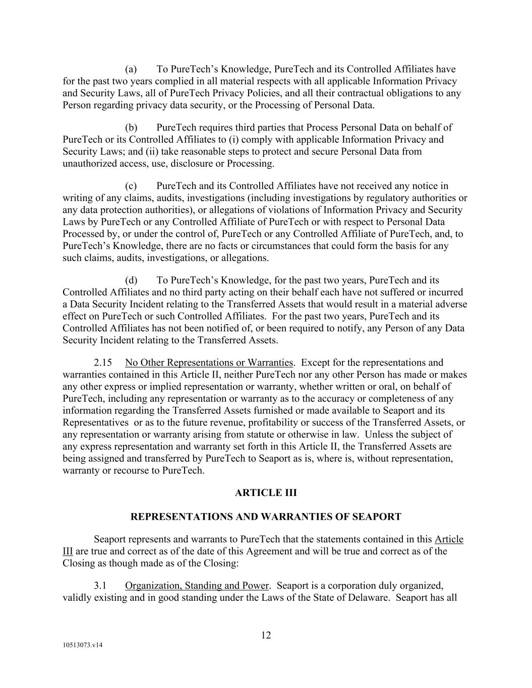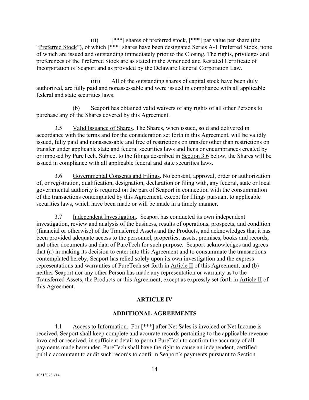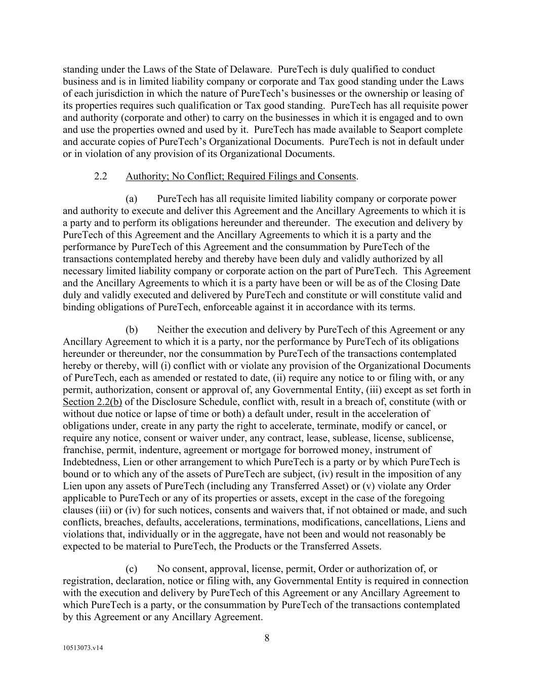 F-8 Seaport Therapeutics, Inc. Notes to Consolidated Financial Statements 1. NATURE OF BUSINESS AND BASIS OF PRESENTATION Background Seaport Therapeutics, Inc., and its consolidated subsidiaries, Seaport or the Company, is a clinical-stage biopharmaceutical company advancing the development of neuropsychiatric medicines in areas of high unmet patient needs using the Company's proprietary Glyph™ Platform. The accompanying financial statements include the financial position, results of operations and comprehensive loss, changes in cash flows and stockholder's deficit for the period October 18, 2024 through December 31, 2024, or the Stub Period. In accordance with Rule 3-09 of Regulation S-X, full financial statements of significant equity investments are required to be presented in the annual report of the investor. For purposes of S-X 3-09, the investee’s separate annual financial statements should only depict the period of the fiscal year in which it was accounted for by the equity method by the investor. On October 18, 2024, the Company completed the Series B convertible preferred stock financing, or the Series B Financing. This resulted in a decrease to PureTech LYT’s fully-diluted ownership, resulting in PureTech LYT no longer maintaining a controlling interest in the Company. Accordingly, the Stub Period reflects the activities of the Company after the closing of the Series B Financing. See Note 8—Convertible Preferred Stock, for further disclosure around the issuances of the Company's convertible preferred stock. The Company is subject to risks and uncertainties common to early-stage companies in the biotechnology industry, including, but not limited to, completion of preclinical studies and clinical trials, obtaining regulatory approvals for product candidates, dependence on key personnel, protection of intellectual property, compliance with government regulations, and ability to secure capital necessary to fund operations. Product candidates currently under development by the Company will require significant additional research and development efforts, including preclinical and clinical development, and regulatory approval prior to commercialization. There can be no assurance that the Company’s research and development efforts will be successfully completed, that any product candidates developed will obtain necessary government regulatory approval or that any products, if approved, will be commercially viable. The Company operates in an environment of rapid technological innovation and substantial competition from pharmaceutical and biotechnology companies. Even if the Company’s product development efforts are successful, it is uncertain when, if ever, the Company will realize significant product revenue from product sales. The Asset Transfer and Series A Financing The Company was incorporated in April 2024 by PureTech LYT Inc., or PureTech LYT, a wholly owned subsidiary of PureTech, as the sole stockholder, and the Company issued 1,000 shares of its common stock to PureTech LYT. On April 8, 2024, or the Asset Transfer Date, the Company entered into an Asset Transfer Agreement, or the Asset Transfer, with PureTech Health LLC and PureTech LYT, pursuant to which PureTech Health LLC and PureTech LYT, agreed to contribute, convey, assign, transfer and deliver to the Company all of its right, title and interest in, to and under the assets related to its Glyph Technology and Products. As consideration, the Company issued to PureTech LYT, 40,000,000 shares of its Series A-1 convertible preferred stock and 949,000 shares of its common stock on the Asset Transfer Date, and also agreed to contingent payments to PureTech upon successful development and commercialization of products developed using the Glyph technology platform, or each Seaport Glyph Product, including; (i) low single digit tiered royalties; (ii) milestone payments up to $15.0 million upon achievement of specified milestones; and (iii) a percentage of net income generated by the Company from third parties on any products licensed under agreements which were transferred as part of the Asset Transfer Agreement. The Company determined that the Asset Transfer and related spin-off transaction represented the transfer of a business between entities under common control. As a result, the net liabilities were transferred from PureTech to the Company at PureTech’s carrying amounts on the Asset Transfer Date and the Company ascribed a nil value to the convertible preferred stock and common stock issued to PureTech Health LLC and PureTech LYT. Concurrently, upon entry into the Asset Transfer, the Company entered into a stock purchase agreement with PureTech LYT and other third-party investors, pursuant to which the Company issued and sold shares of its Series A-2 convertible preferred stock, or the Series A Financing, and together with the Asset Transfer, the Transaction. See Note 8—Convertible Preferred Stock, for further details. PureTech continues to provide various research and development and corporate services under the transition services agreement, or TSA, which was initially set to terminate one year following the date of the Asset Transfer Agreement. In March 2025 the Company extended the TSA for an additional six months. The company may incur additional operating expenses for these services once the TSA expires.