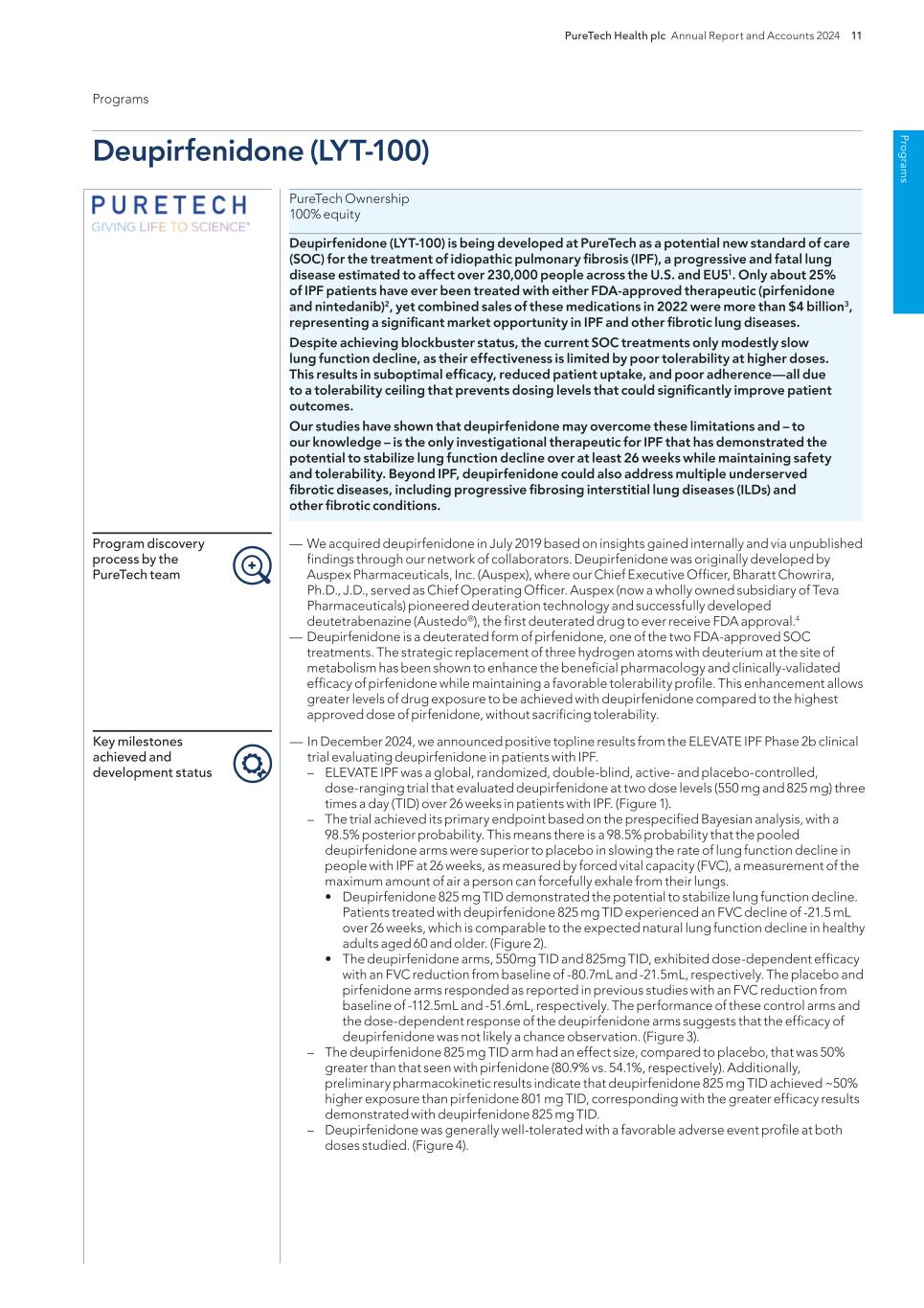 •the success, cost and timing of our clinical development within our Wholly-Owned Programs and Founded Entities, including the progress of, and results from, our Wholly-Owned Programs' and Founded Entities' preclinical and clinical trials of deupirfenidone (LYT-100) and LYT-200, our technology platforms and other potential therapeutic candidates within our Wholly-Owned Programs and therapeutic candidates being developed by our Founded Entities;