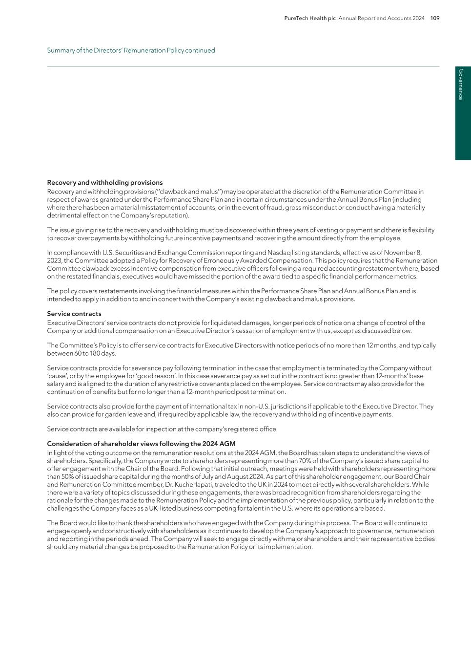 DocumentPURETECH HEALTH PLC POLICY FOR RECOVERY OF ERRONEOUSLY AWARDED COMPENSATION