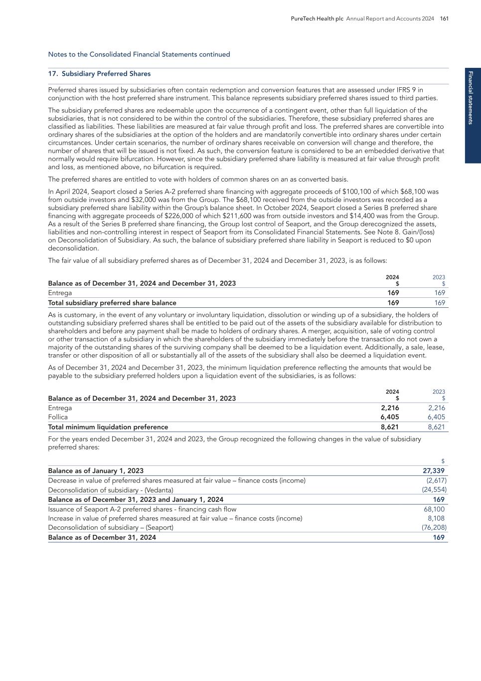 ptv-202412312024FY0001782999FalsetrueP1Yxbrli:sharesiso4217:USDiso4217:USDxbrli:sharesxbrli:pureptv:segmentptv:entityptv:business_dayptv:employeeiso4217:GBPxbrli:sharesptv:penceptv:simulationutr:Yptv:voteptv:trancheiso4217:EURxbrli:sharesutr:sqftptv:period00017829992024-01-012024-12-310001782999dei:BusinessContactMember2024-01-012024-12-310001782999ptv:AmericanDepositarySharesMember2024-01-012024-12-310001782999ifrs-full:OrdinarySharesMember2024-01-012024-12-3100017829992024-12-3100017829992022-01-012022-12-3100017829992023-01-012023-12-3100017829992023-12-310001782999ifrs-full:IssuedCapitalMember2021-12-310001782999ifrs-full:SharePremiumMember2021-12-310001782999ifrs-full:TreasurySharesMember2021-12-310001782999ifrs-full:MergerReserveMember2021-12-310001782999ifrs-full:ReserveOfExchangeDifferencesOnTranslationMember2021-12-310001782999ifrs-full:OtherReservesMember2021-12-310001782999ifrs-full:RetainedEarningsMember2021-12-310001782999ifrs-full:EquityAttributableToOwnersOfParentMember2021-12-310001782999ifrs-full:NoncontrollingInterestsMember2021-12-3100017829992021-12-310001782999ifrs-full:RetainedEarningsMember2022-01-012022-12-310001782999ifrs-full:EquityAttributableToOwnersOfParentMember2022-01-012022-12-310001782999ifrs-full:NoncontrollingInterestsMember2022-01-012022-12-310001782999ifrs-full:ReserveOfExchangeDifferencesOnTranslationMember2022-01-012022-12-310001782999ifrs-full:IssuedCapitalMember2022-01-012022-12-310001782999ifrs-full:SharePremiumMember2022-01-012022-12-310001782999ifrs-full:TreasurySharesMember2022-01-012022-12-310001782999ifrs-full:OtherReservesMember2022-01-012022-12-310001782999ifrs-full:IssuedCapitalMember2022-12-310001782999ifrs-full:SharePremiumMember2022-12-310001782999ifrs-full:TreasurySharesMember2022-12-310001782999ifrs-full:MergerReserveMember2022-12-310001782999ifrs-full:ReserveOfExchangeDifferencesOnTranslationMember2022-12-310001782999ifrs-full:OtherReservesMember2022-12-310001782999ifrs-full:RetainedEarningsMember2022-12-310001782999ifrs-full:EquityAttributableToOwnersOfParentMember2022-12-310001782999ifrs-full:NoncontrollingInterestsMember2022-12-3100017829992022-12-310001782999ifrs-full:RetainedEarningsMember2023-01-012023-12-310001782999ifrs-full:EquityAttributableToOwnersOfParentMember2023-01-012023-12-310001782999ifrs-full:NoncontrollingInterestsMember2023-01-012023-12-310001782999ifrs-full:ReserveOfExchangeDifferencesOnTranslationMember2023-01-012023-12-310001782999ifrs-full:IssuedCapitalMember2023-01-012023-12-310001782999ifrs-full:SharePremiumMember2023-01-012023-12-310001782999ifrs-full:TreasurySharesMember2023-01-012023-12-310001782999ifrs-full:OtherReservesMember2023-01-012023-12-310001782999ifrs-full:IssuedCapitalMember2023-12-310001782999ifrs-full:SharePremiumMember2023-12-310001782999ifrs-full:TreasurySharesMember2023-12-310001782999ifrs-full:MergerReserveMember2023-12-310001782999ifrs-full:ReserveOfExchangeDifferencesOnTranslationMember2023-12-310001782999ifrs-full:OtherReservesMember2023-12-310001782999ifrs-full:RetainedEarningsMember2023-12-310001782999ifrs-full:EquityAttributableToOwnersOfParentMember2023-12-310001782999ifrs-full:NoncontrollingInterestsMember2023-12-310001782999ifrs-full:RetainedEarningsMember2024-01-012024-12-310001782999ifrs-full:EquityAttributableToOwnersOfParentMember2024-01-012024-12-310001782999ifrs-full:NoncontrollingInterestsMember2024-01-012024-12-310001782999ifrs-full:ReserveOfExchangeDifferencesOnTranslationMember2024-01-012024-12-310001782999ifrs-full:IssuedCapitalMember2024-01-012024-12-310001782999ifrs-full:TreasurySharesMember2024-01-012024-12-310001782999ifrs-full:OtherReservesMember2024-01-012024-12-310001782999ifrs-full:IssuedCapitalMember2024-12-310001782999ifrs-full:SharePremiumMember2024-12-310001782999ifrs-full:TreasurySharesMember2024-12-310001782999ifrs-full:MergerReserveMember2024-12-310001782999ifrs-full:ReserveOfExchangeDifferencesOnTranslationMember2024-12-310001782999ifrs-full:OtherReservesMember2024-12-310001782999ifrs-full:RetainedEarningsMember2024-12-310001782999ifrs-full:EquityAttributableToOwnersOfParentMember2024-12-310001782999ifrs-full:NoncontrollingInterestsMember2024-12-310001782999ptv:InactiveSubsidiariesMemberifrs-full:OrdinarySharesMemberptv:GallopOncologyInc.IndirectlyHeldThroughPureTechLYTMember2024-01-012024-12-310001782999ptv:InactiveSubsidiariesMemberifrs-full:PreferenceSharesMemberptv:GallopOncologyInc.IndirectlyHeldThroughPureTechLYTMember2024-01-012024-12-310001782999ptv:SubsidiaryOperatingCompaniesMemberifrs-full:OrdinarySharesMemberptv:EntregaMember2024-01-012024-12-310001782999ptv:SubsidiaryOperatingCompaniesMemberifrs-full:PreferenceSharesMemberptv:EntregaMember2024-01-012024-12-310001782999ptv:SubsidiaryOperatingCompaniesMemberifrs-full:OrdinarySharesMemberptv:EntregaMember2023-01-012023-12-310001782999ptv:SubsidiaryOperatingCompaniesMemberifrs-full:PreferenceSharesMemberptv:EntregaMember2023-01-012023-12-310001782999ptv:SubsidiaryOperatingCompaniesMemberifrs-full:OrdinarySharesMemberptv:EntregaMember2022-01-012022-12-310001782999ptv:SubsidiaryOperatingCompaniesMemberifrs-full:PreferenceSharesMemberptv:EntregaMember2022-01-012022-12-310001782999ptv:SubsidiaryOperatingCompaniesMemberifrs-full:OrdinarySharesMemberptv:PureTechLYTMember2024-01-012024-12-310001782999ptv:SubsidiaryOperatingCompaniesMemberifrs-full:PreferenceSharesMemberptv:PureTechLYTMember2024-01-012024-12-310001782999ptv:SubsidiaryOperatingCompaniesMemberifrs-full:OrdinarySharesMemberptv:PureTechLYTMember2023-01-012023-12-310001782999ptv:SubsidiaryOperatingCompaniesMemberifrs-full:PreferenceSharesMemberptv:PureTechLYTMember2023-01-012023-12-310001782999ptv:SubsidiaryOperatingCompaniesMemberifrs-full:OrdinarySharesMemberptv:PureTechLYTMember2022-01-012022-12-310001782999ptv:SubsidiaryOperatingCompaniesMemberifrs-full:PreferenceSharesMemberptv:PureTechLYTMember2022-01-012022-12-310001782999ptv:SubsidiaryOperatingCompaniesMemberifrs-full:OrdinarySharesMemberptv:PureTechLYT100Member2024-01-012024-12-3