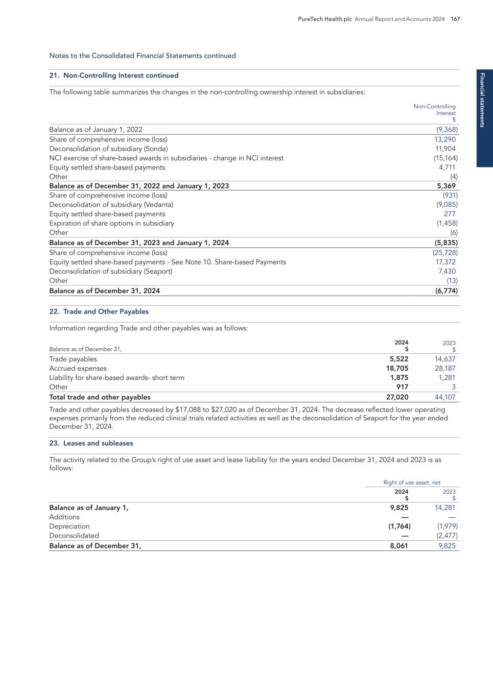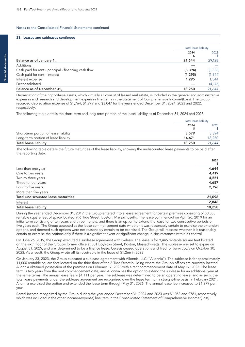 F-21 12. LEASES In October 2024, the Company entered into an operating lease for office space in Boston, Massachusetts, which commenced in December 2024 and has an initial lease term that continues through October 20, 2030, with no options to extend. In conjunction with entering into the lease, the Company paid a security deposit of $0.2 million in the form of a letter of credit, which is recorded as restricted cash within other non-current assets on the Company's consolidated balance sheet as of December 31, 2024. In December 2024, the Company entered into a lease agreement with a third party for lab space located in Boston, MA. The lease commenced in January 2025 and is for an initial term of 24 months from the commencement date, with no renewal option. Prior to entering into these leases, the Company did not have any leases as it shared office and lab space with PureTech and made payments to PureTech under the TSA. See Note 14—Related Parties for further disclosure of transactions with PureTech. The following table contains a summary of the components of lease costs recognized pertaining to the Company's operating lease for the Stub Period. (in thousands): For the Period October 18, 2024 - December 31, 2024 Lease Cost Operating lease cost $ 75 Variable lease cost — Total lease cost $ 75 The following table contains a summary of other supplemental lease information pertaining to the Company's operating lease for the Stub Period: For the Period October 18, 2024 - December 31, 2024 Other Lease Information Cash paid for amounts included in the measurement of lease liability – operating leases (in thousands) $ — Weighted-average remaining lease term – operating leases 5.8 Weighted-average discount rate – operating leases 6.61 % The table below reconciles future minimum payments under noncancellable operating leases as of December 31, 2024 (in thousands): Operating Leases 2025 $ 1,432 2026 1,635 2027 1,100 2028 1,079 2029 1,112 Thereafter 918 Total lease payment 7,276 Less: interest (1,051 ) Less: impact of leases not yet commenced (1,219 ) Total lease liabilities $ 5,006 Current lease liability $ 857 Non-current lease liability $ 4,149