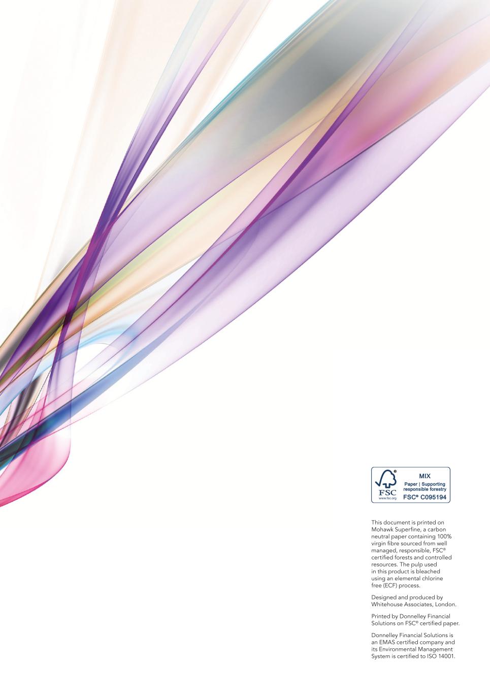 This document is printed on Mohawk Superfine, a carbon neutral paper containing 100% virgin fibre sourced from well managed, responsible, FSC® certified forests and controlled resources. The pulp used in this product is bleached using an elemental chlorine free (ECF) process. Designed and produced by Whitehouse Associates, London. Printed by Donnelley Financial Solutions on FSC® certified paper. Donnelley Financial Solutions is an EMAS certified company and its Environmental Management System is certified to ISO 14001.