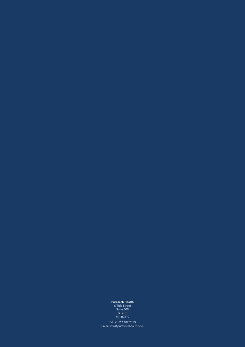 PureTech Health 6 Tide Street Suite 400 Boston MA 02210 Tel: +1 617 482 2333 Email: info@puretechhealth.com