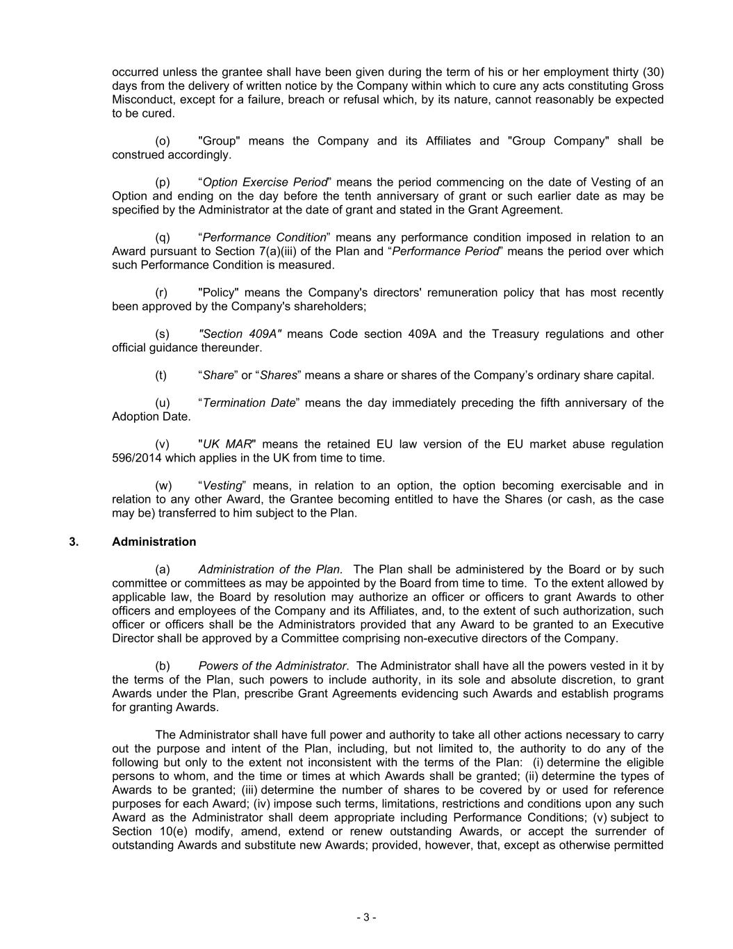 “Committee” means the Remuneration Committee of the Board, provided that, for purposes of determining whether recovery of Incentive-Based Compensation that is Erroneously Awarded Compensation would be Impracticable, “Committee” shall mean the committee of the Board responsible for executive compensation decisions comprised solely of independent directors (as determined under the Applicable Rules), or in the absence of such a committee, a majority of the independent directors serving on the Board.