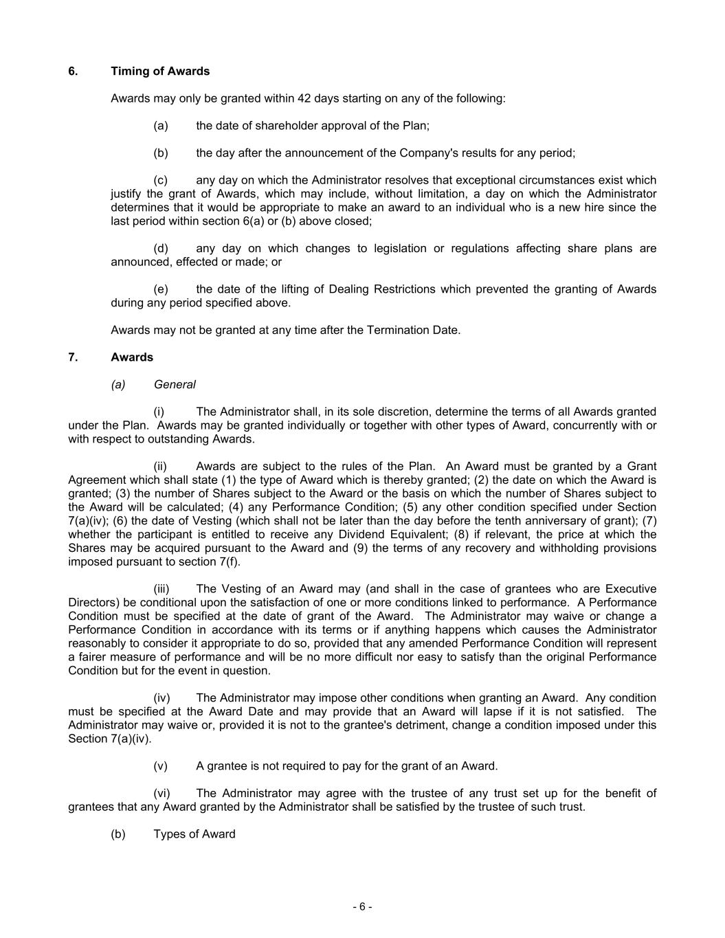 Except as otherwise determined by the Committee or the Board, the adoption of this Policy does not limit, and is intended to apply in addition to, any other clawback, recoupment, forfeiture or similar policies or provisions of the Company or its affiliates, including any such policies or provisions of such effect contained in any employment agreement, bonus plan, incentive plan, equity-based plan or award agreement thereunder or similar plan, program or agreement of the Company or an affiliate or required under applicable law (the “Other Recovery Arrangements”). The remedy specified in this Policy shall not be exclusive and shall be in addition to every other right or remedy at law or in equity that may be available to the Company or an affiliate of the Company or is otherwise required by applicable law and regulations.