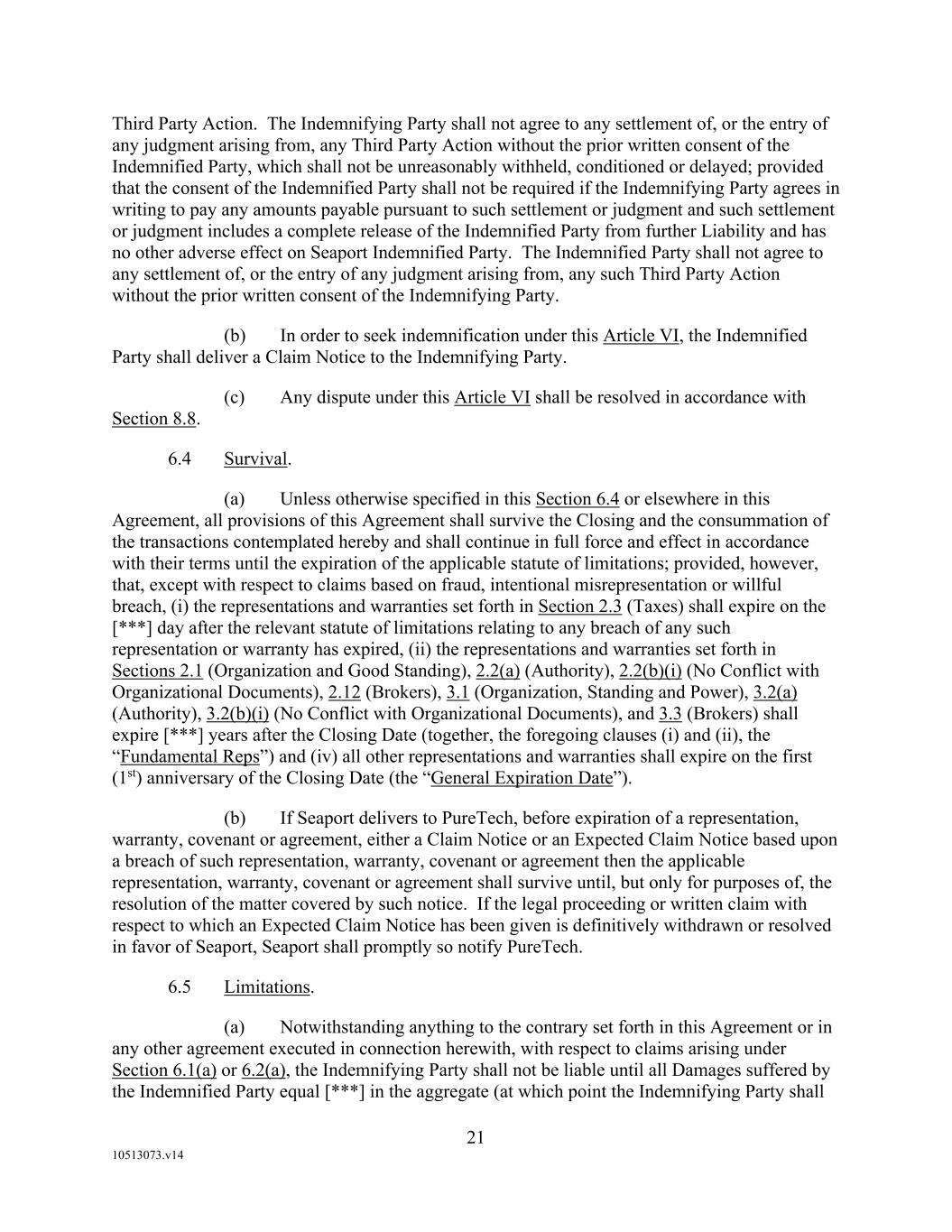 1.No Indemnification; No Liability